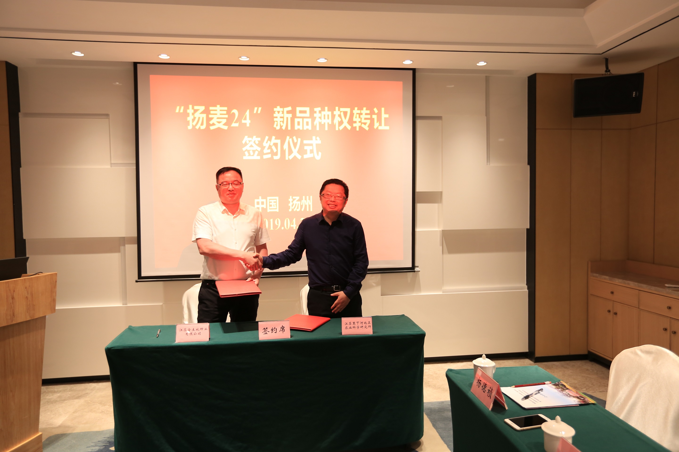 期间,在全体参会领导及专家共同见证下,李爱宏所长和杨德祯总经理分别代表江苏里下河地区农科所和江苏金土地种业有限公司签订了扬麦24品种权转让协议,该品种丰产性好、抗病性强,是我所迄今育成的“综合性状最好的弱筋小麦品种”,满足了长江中下游淮南麦区市场的迫切需求。
