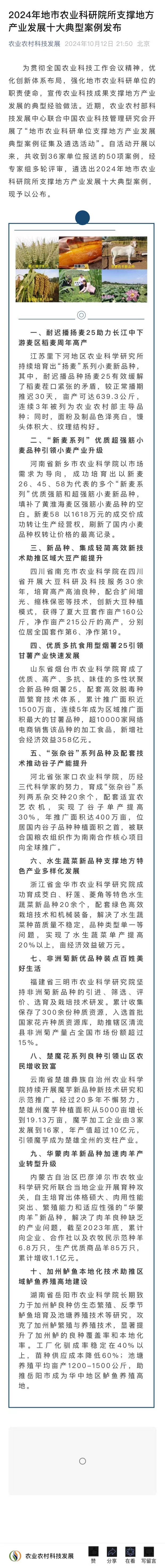 为贯彻全国农业科技工作会议精神,优化创新体系布局,强化地市农业科研单位的职责使命,宣传农业科技成果支撑地方产业发展的典型经验做法。近期,农业农村部科技发展中心联合中国农业科技管理研究会开展了“地市农业科研单位支撑地方产业发展典型案例征集及遴选活动”。